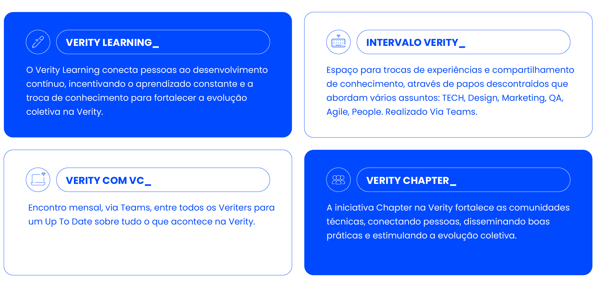 Aqui na Verity temos diversas ações que estimulam a troca de conhecimento: